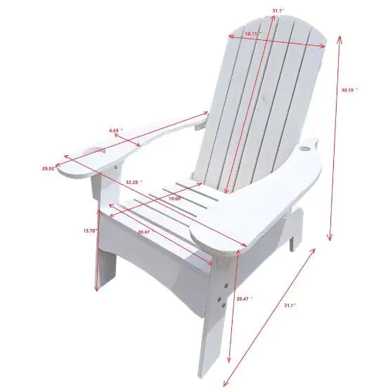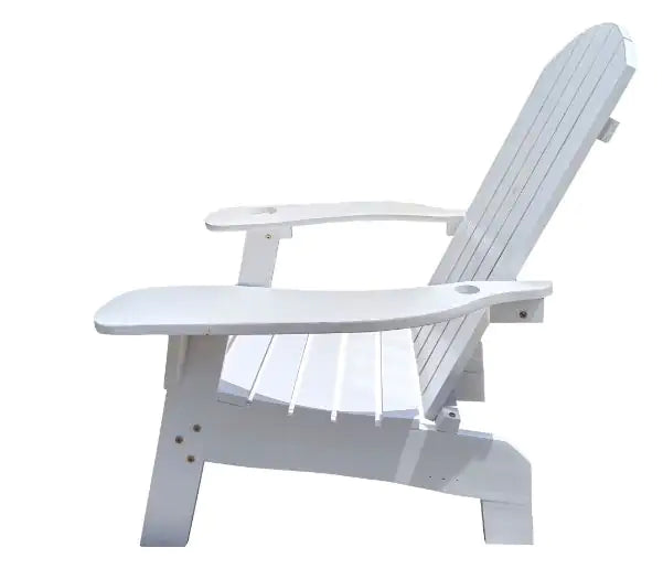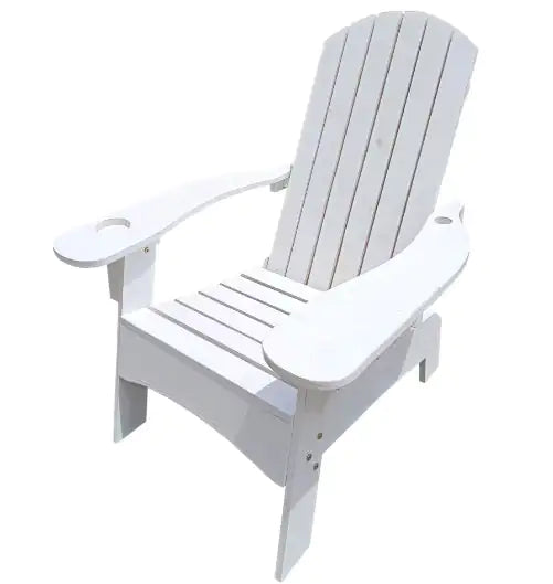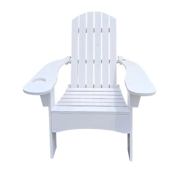 Product Name: Outdoor or Indoor Wooden Adirondack Chair with a Hole in the Arm to Place an Umbrella, White
