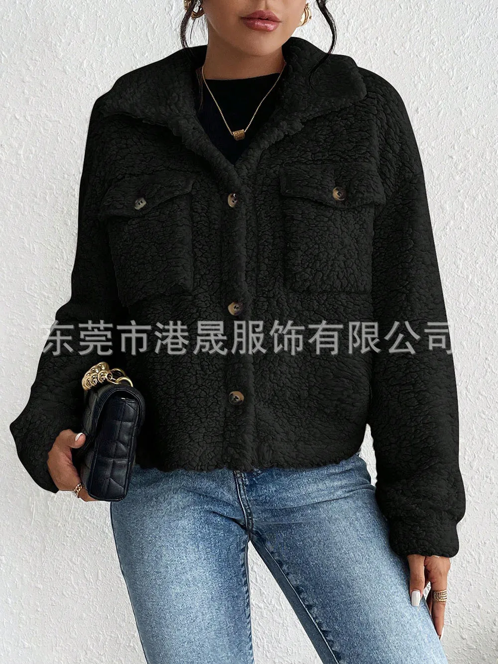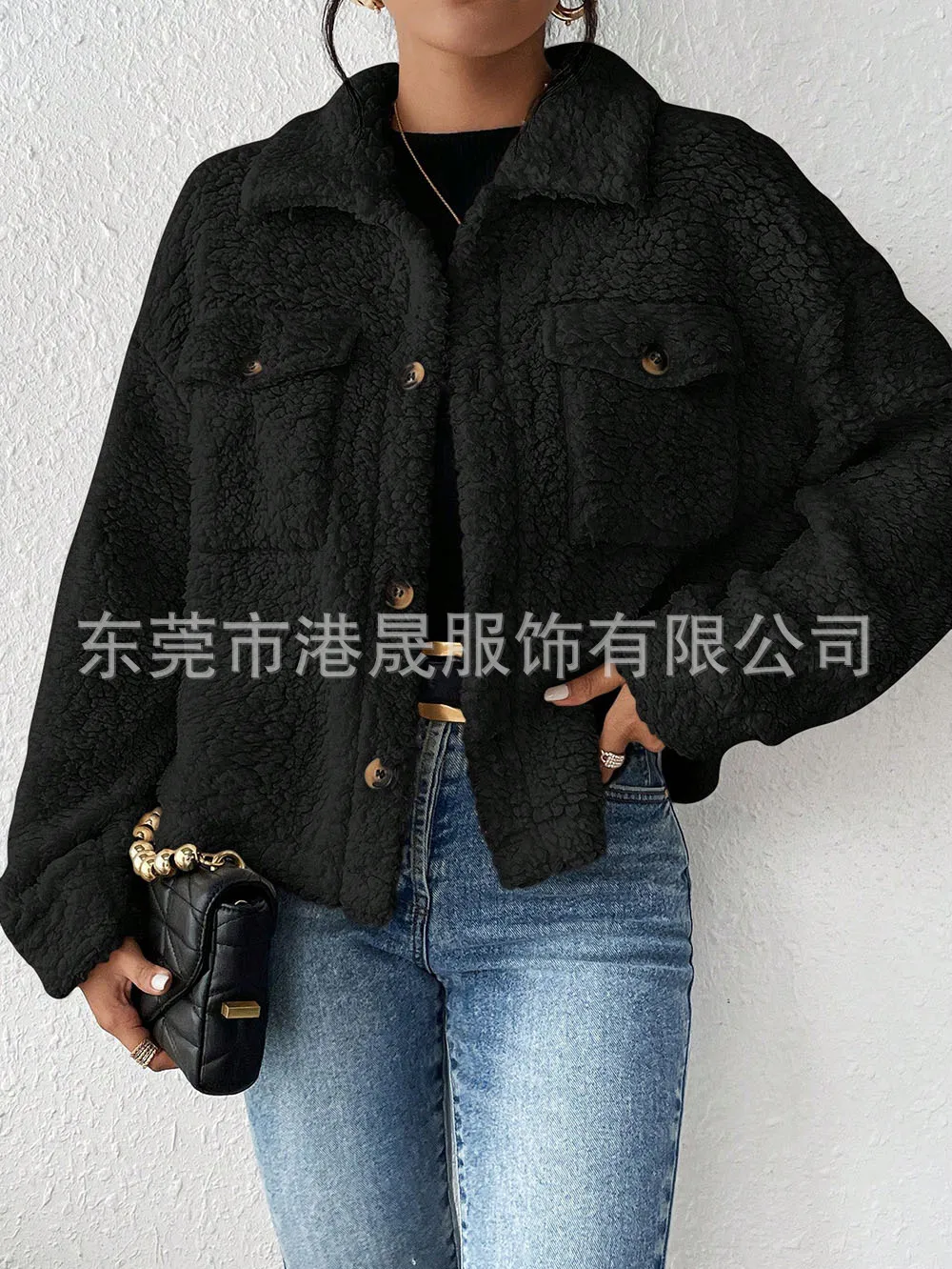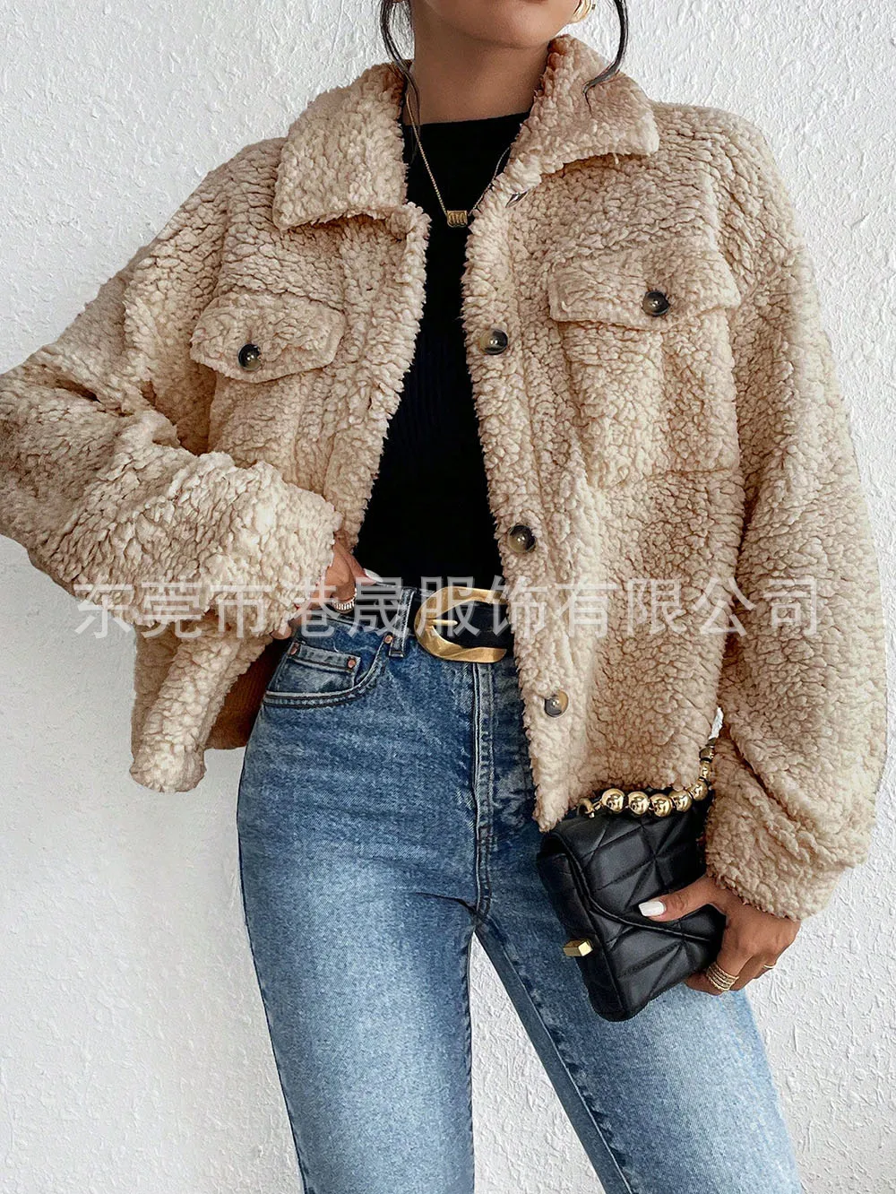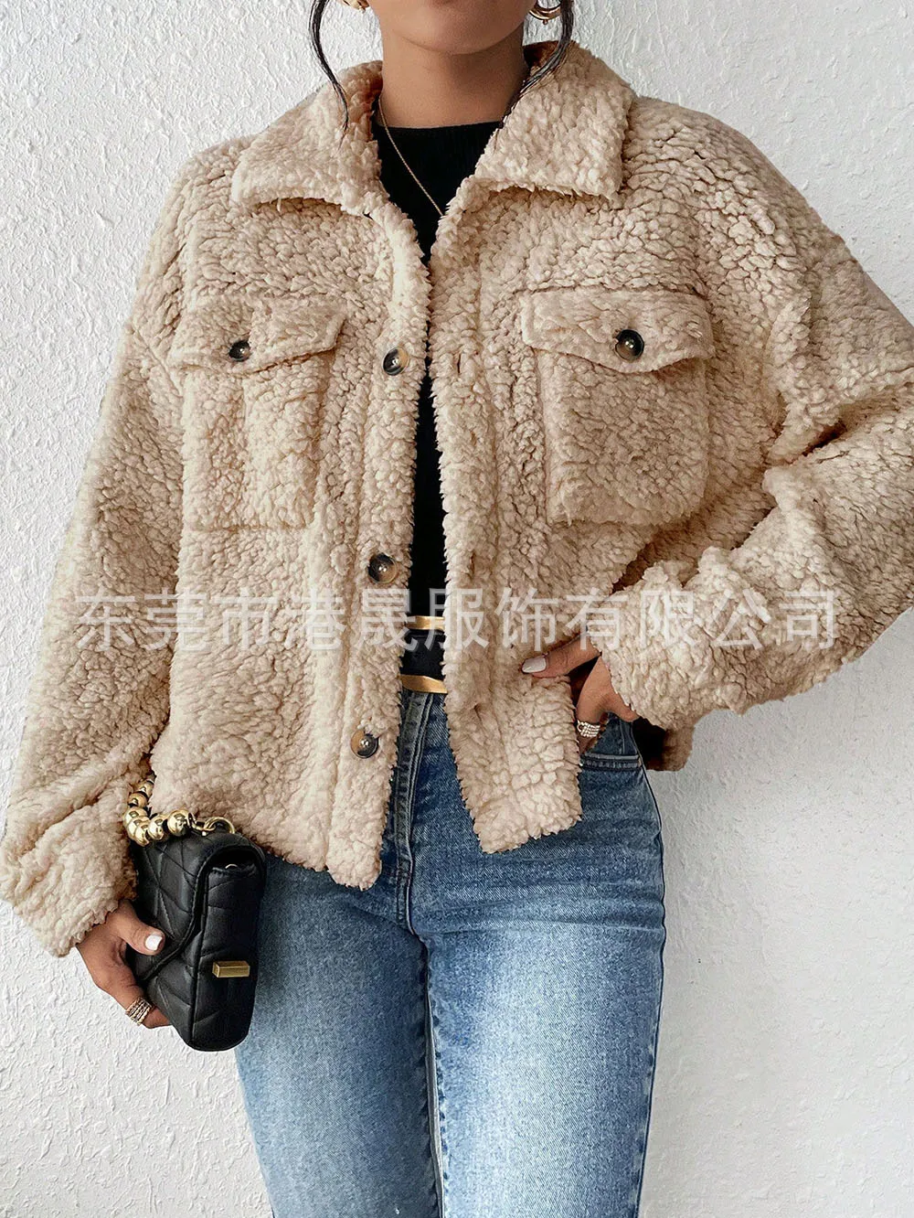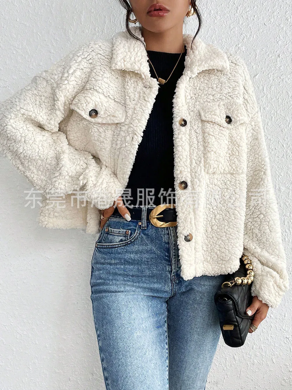 Casual Women's Coats Autumn And Winter Lapel Plush Jacket Short Women Jacket New Fashion White Pockets Tops Coat Streetwear