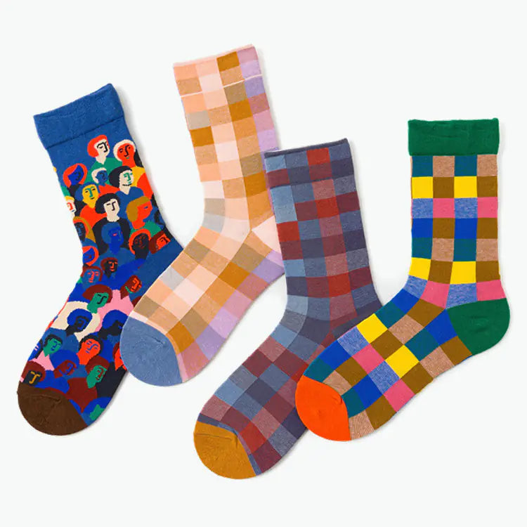 Available in a variety of eye-catching styles, including color head, rainbow plaid, orange plaid, and gray-red plaid, these socks add a unique touch to any outfit. Their jacquard process ensures vibrant colors and intricate designs that stand out.