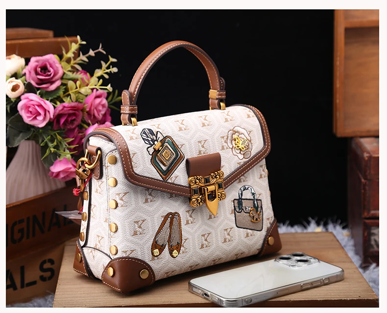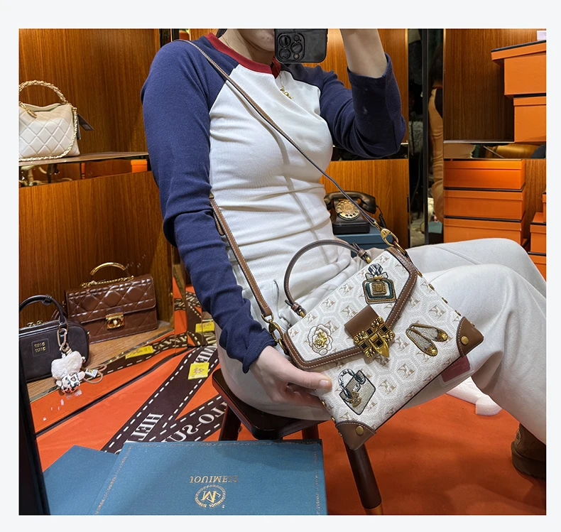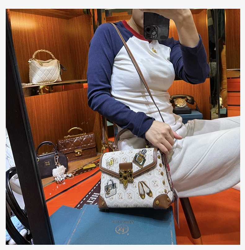 Designer handbag retro small square bag women's 2025 new autumn and winter high-end printed shoulder crossbody bag