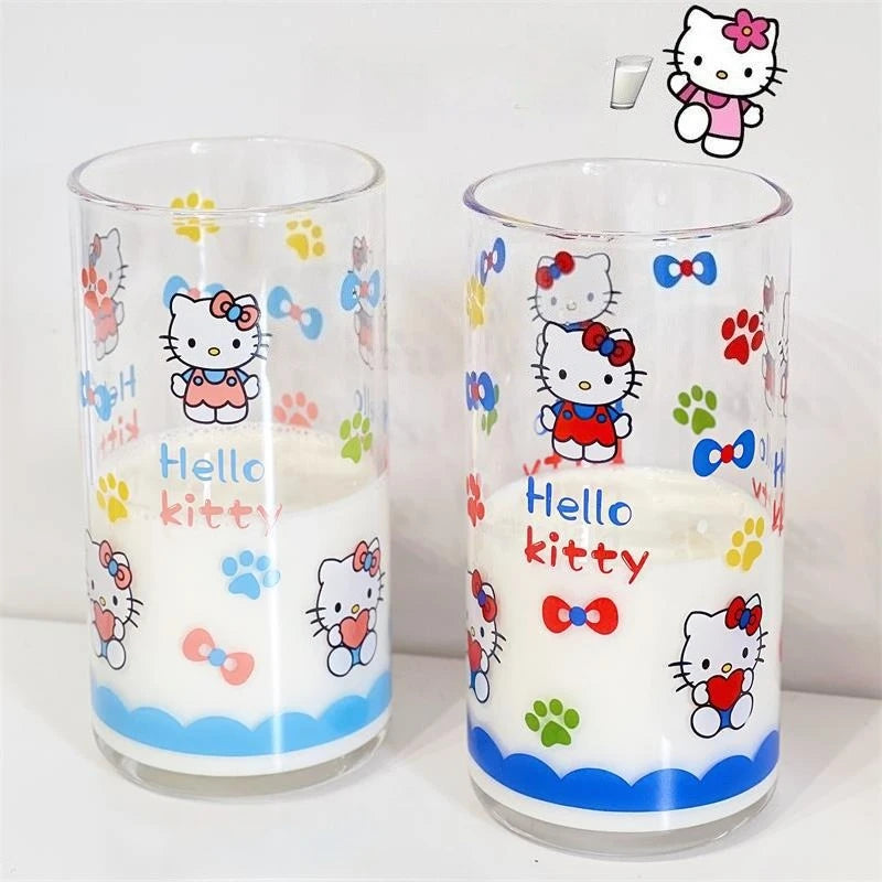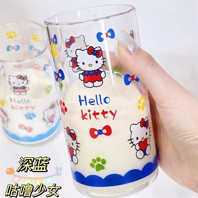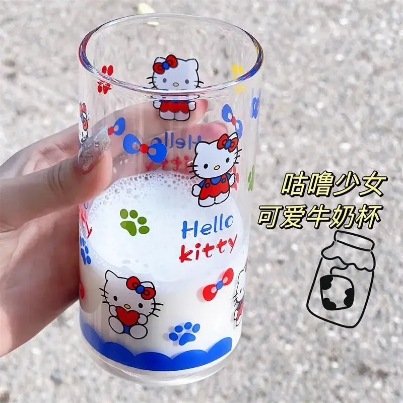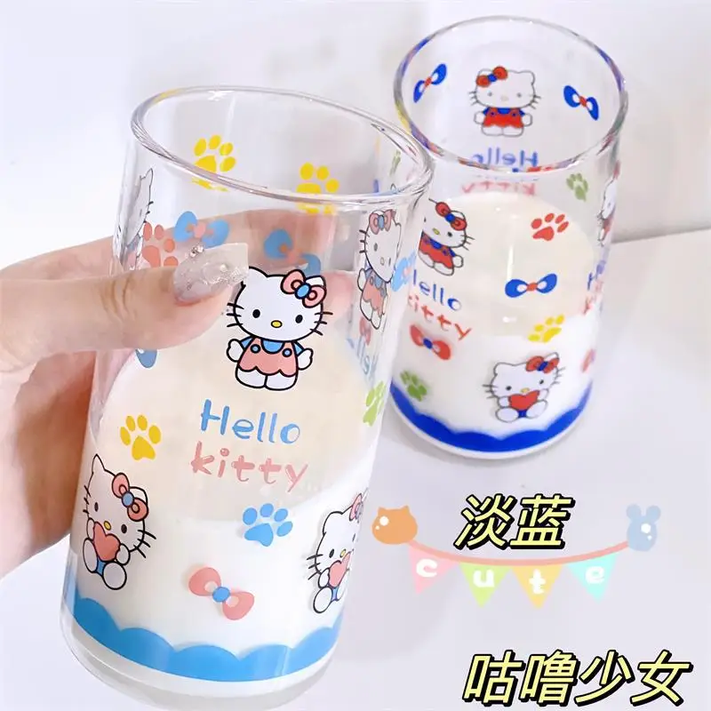 Kawaii Sanrio Hello Kitty Anime Cartoon Glass Cup Home Dormitory Office Fruit Juice Milk Coffee Breakfast Water Cup Cute Gift
