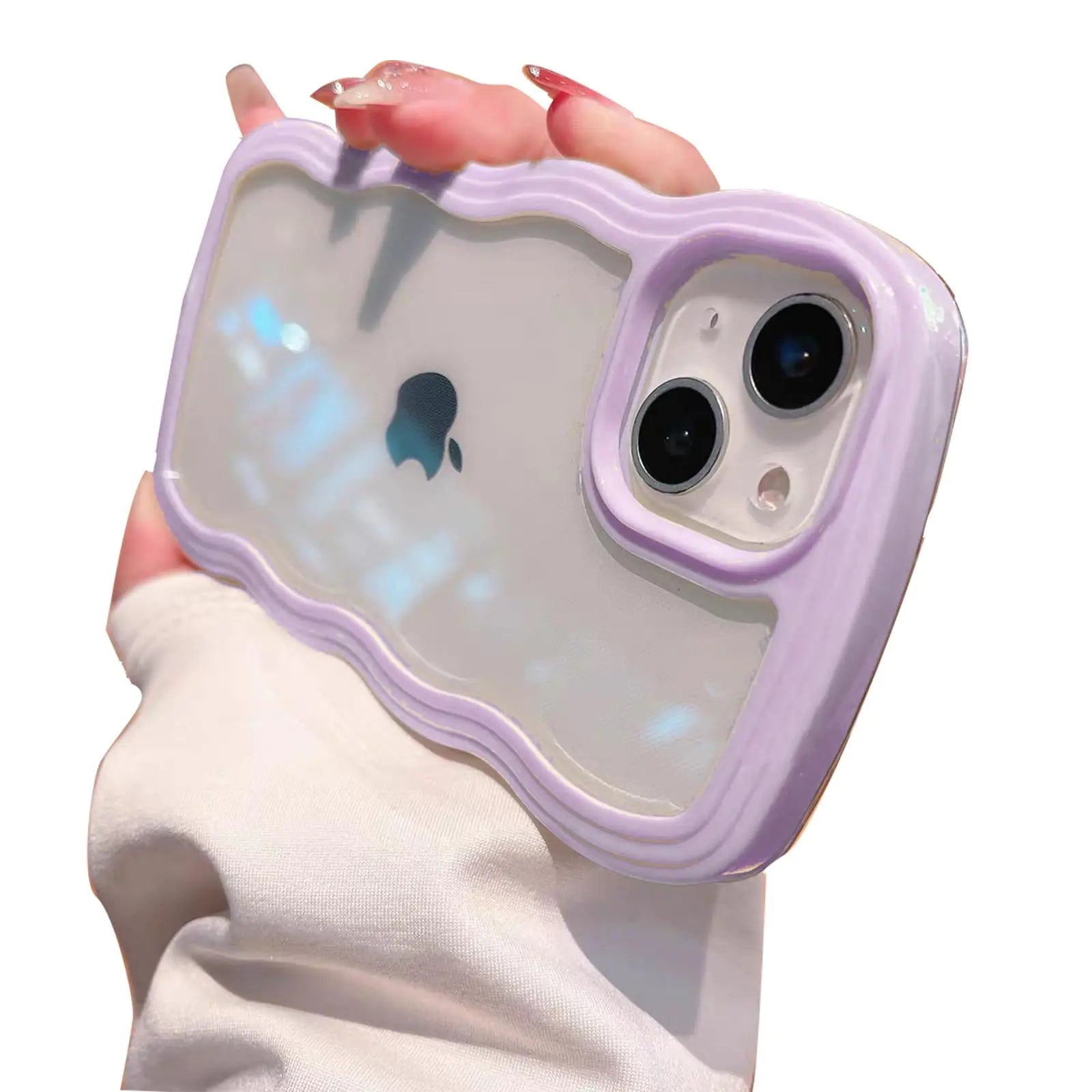 Compatible for iPhone 15 Case Clear Cute Curly Wave Frame Shape for iPhone 15 Phone Cases Shockproof Soft Protective Phone Cover for Women Girls for iPhone 15 Cases Clear Cover Design Purple