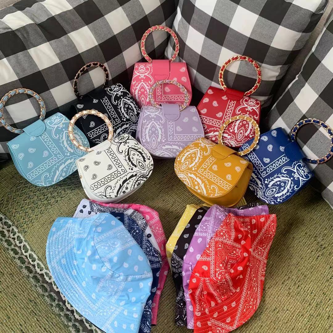 New Style Matching Bucket Hats And Bandana Purse Set Designer Purses And Handbags Ladies Hand Bags Women Purses 2021 BM049