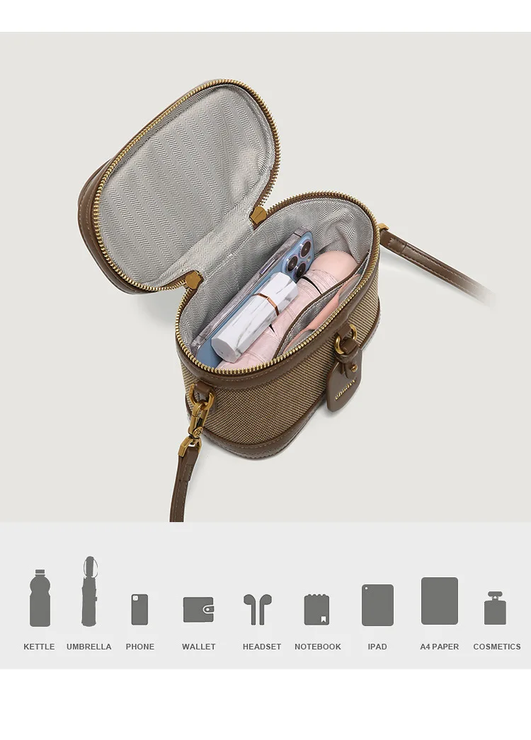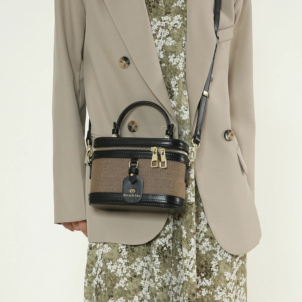 Retro Single Shoulder Crossbody Handbag for Women Fashionable Retro Box Bag with Zip Nylon Contrast Color Bucket Bag