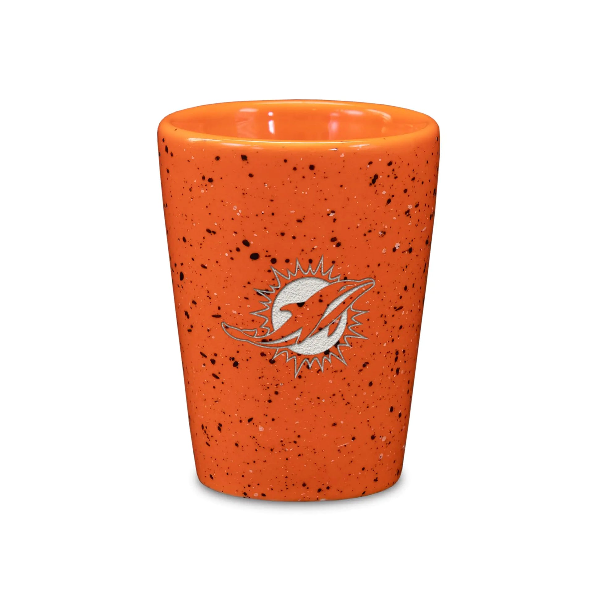 Rico Industries NFL Football Miami Dolphins 2oz Ceramic Shot Glass for Fans Laser Engraved In Team Color Single Shot Glass