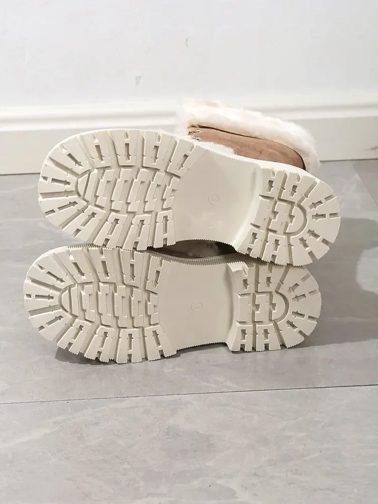 Thicken Plush Snow Boots for Women Winter Faux Fur Platform Ankle Boots Woman Mid-calf Lace-up Snow Boots Thickened Cotton Shoes