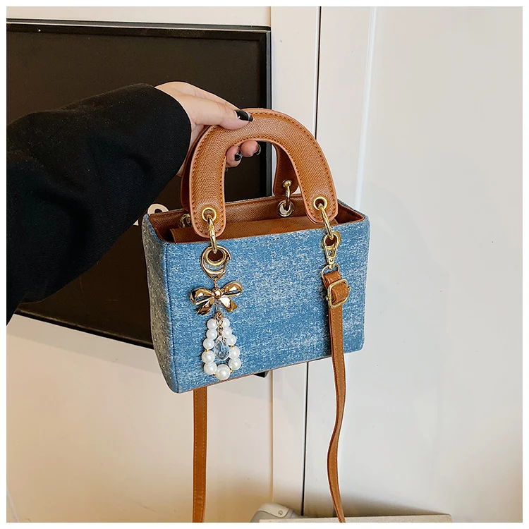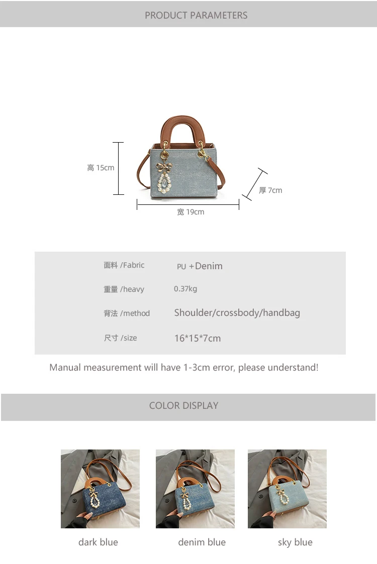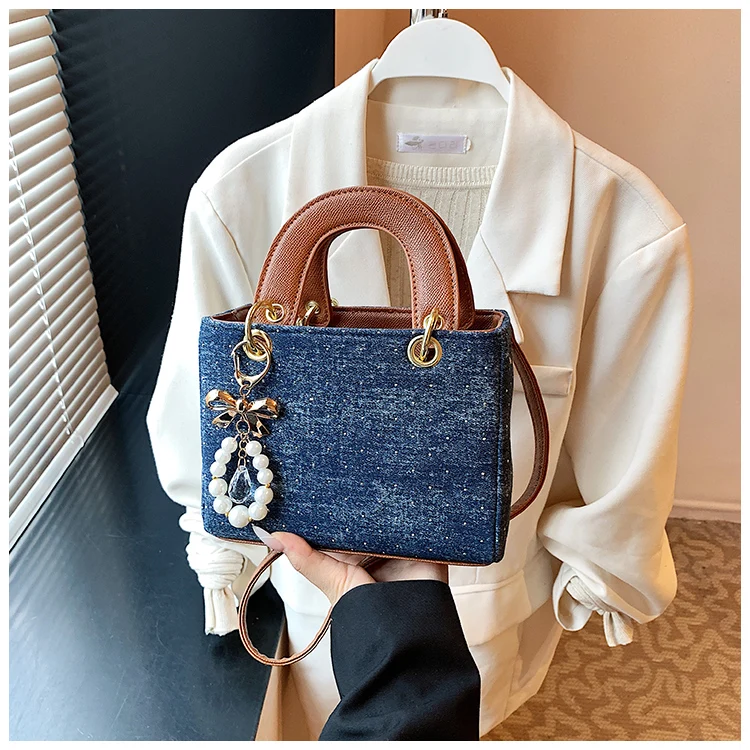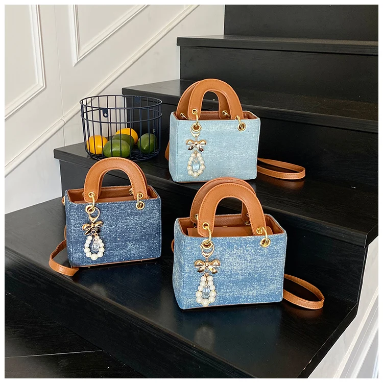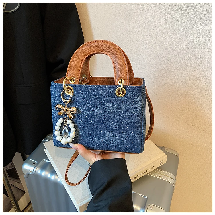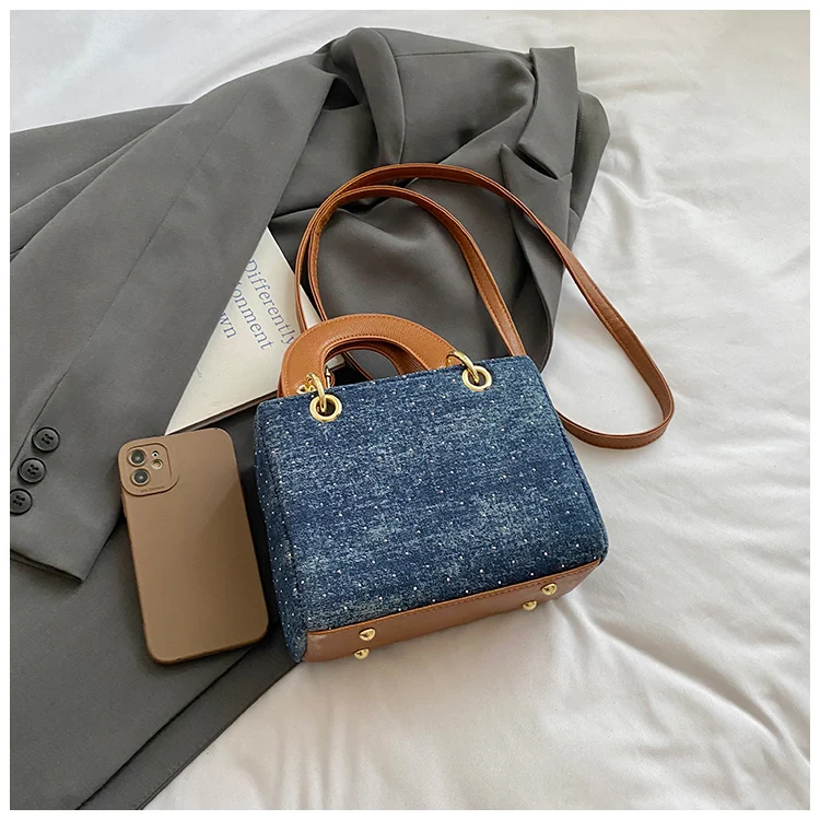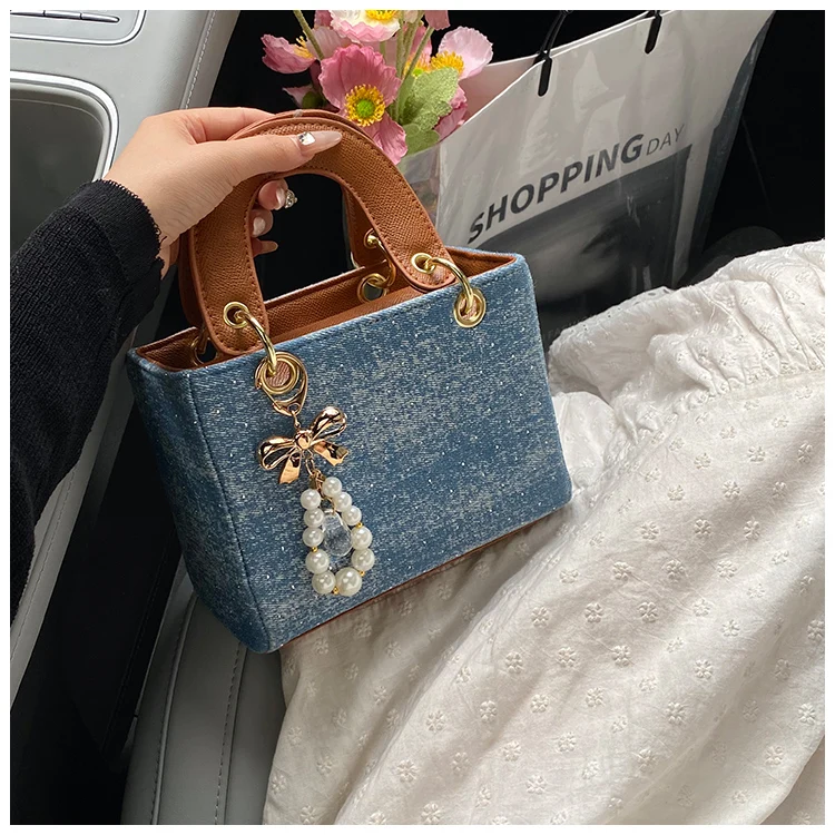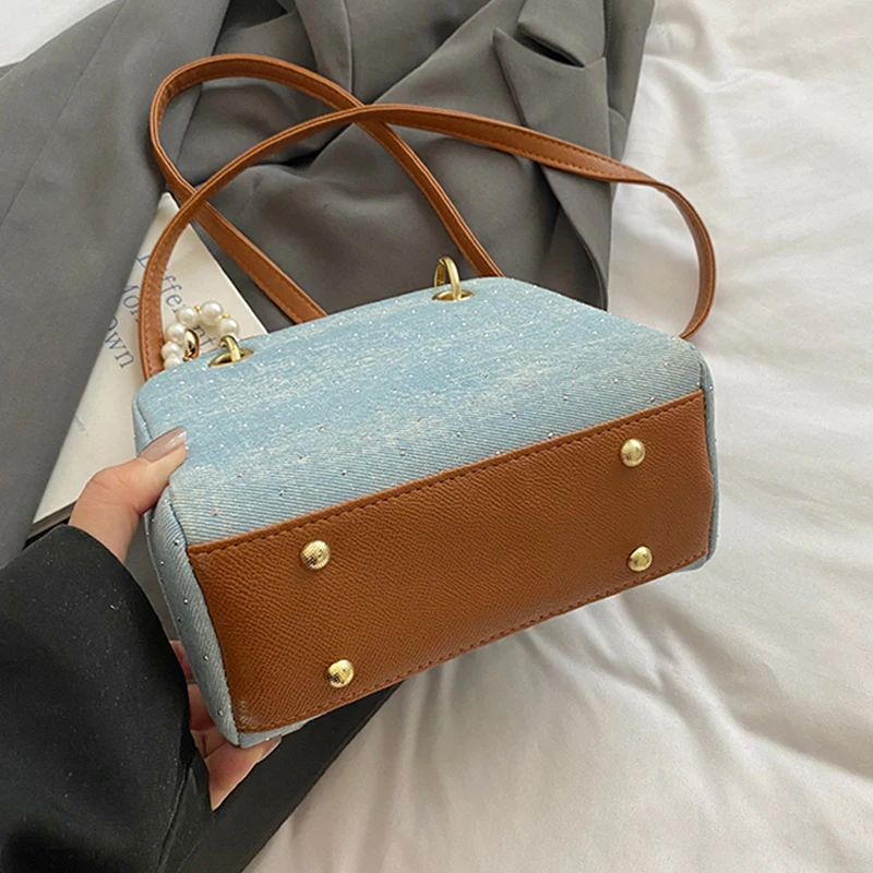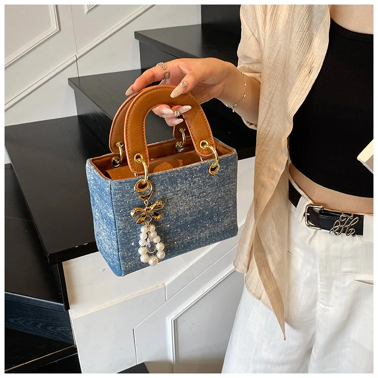 Women's Diamond Denim Clotch Handbag Korean Chic Retro Mini Single Shoulder Crossbody Bags Elegant Luxury Party Square Clutch