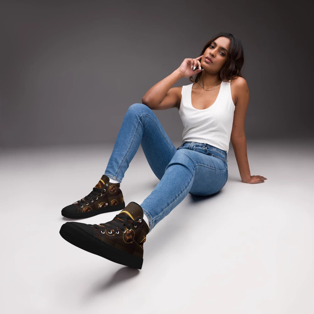 Don’t forget to treat your feet with care! The classic, stylish high top canvas shoes will be a great addition to your wardrobe. • 100% polyester canvas upper side • Ethylene-vinyl acetate (EVA) rubber outsole • Breathable lining, soft insole • Faux leather toe cap • Padded collar, lace-up front • Soles and laces in matching colors • Blank product sourced from China Important: This product is available in the following countries: United States, Canada, Australia, United Kingdom, New Zealand, Japan, Austria, Andorra, Belgium, Bulgaria, Croatia, Czech Republic, Denmark, Estonia, Finland, France, Germany, Greece, Holy See (Vatican city), Hungary, Iceland, Ireland, Italy, Latvia, Lithuania, Liechtenstein, Luxemburg, Malta, Monaco, Netherlands, Norway, Poland, Portugal, San Marino, Slovakia, Slovenia, Switzerland, Spain, Sweden, and Turkey. If your shipping address is outside these countries, please choose a different product. Disclaimer: The shoes will have a glue-like smell when opening the box. The smell will disappear a few days after the shoes are unpacked.